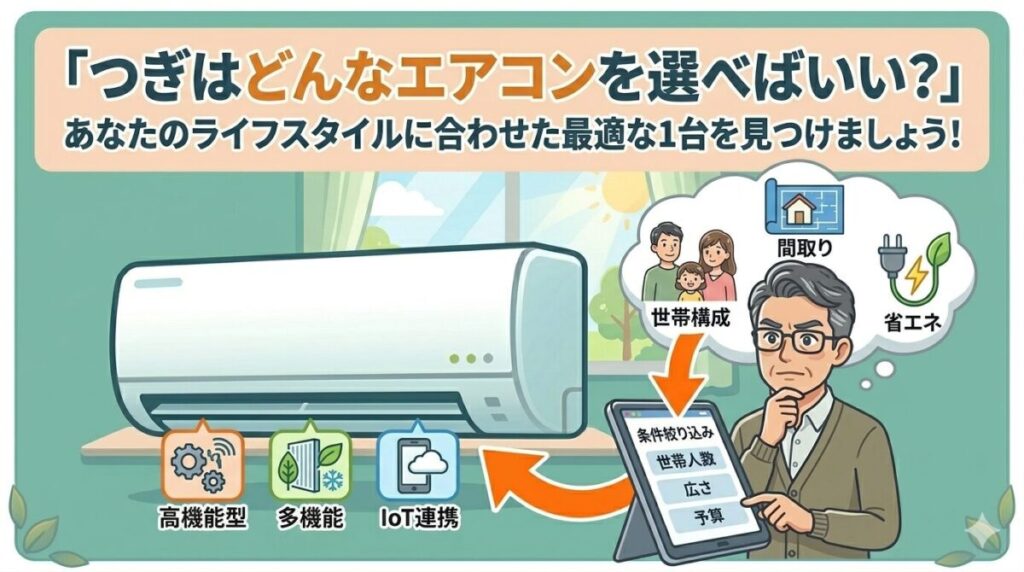 使う部屋や目的に合わせてエアコンを選ぶことで、無駄な出費を抑えることもできます。