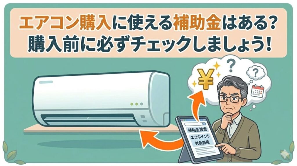 すべての地域で実施されているわけではありませんが、自治体によってはエアコンの購入や買い替えに対して補助金が出ることもあります。