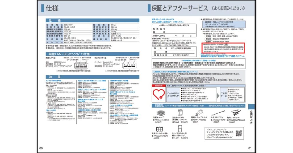 以下の画像のように取扱説明書やネットなどで確認できます。