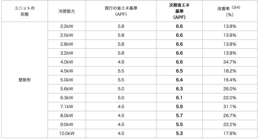 APFは通年エネルギー消費効率(Annual Performance Factor)の略。