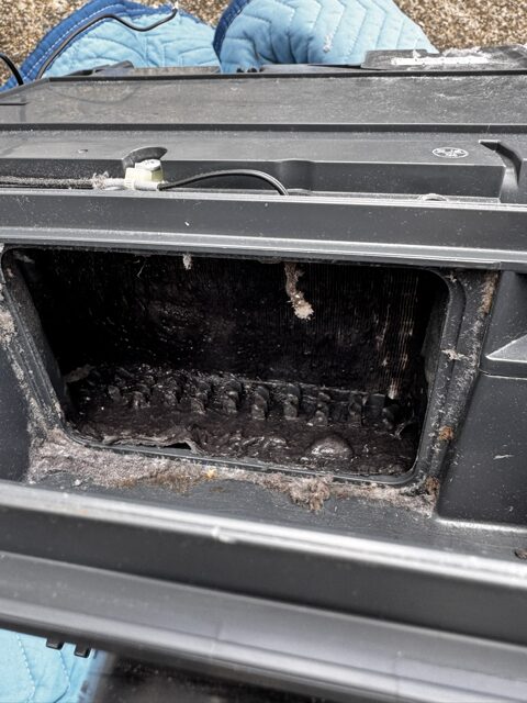 ヒートポンプユニット内部には衣類やホコリ、髪の毛などのゴミが乾燥経路からたくさん侵入してきます。