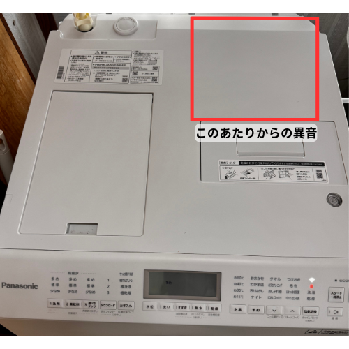 - 乾燥工程に入ると洗濯機の上部より異音が発生する。