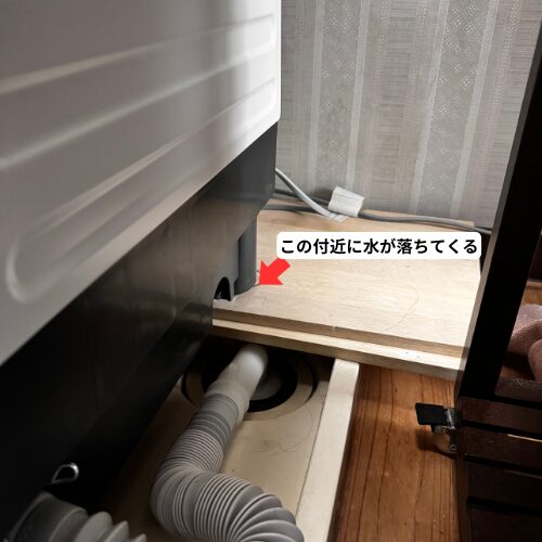- 洗濯機の下、向かって右奥の床などに水漏れする。