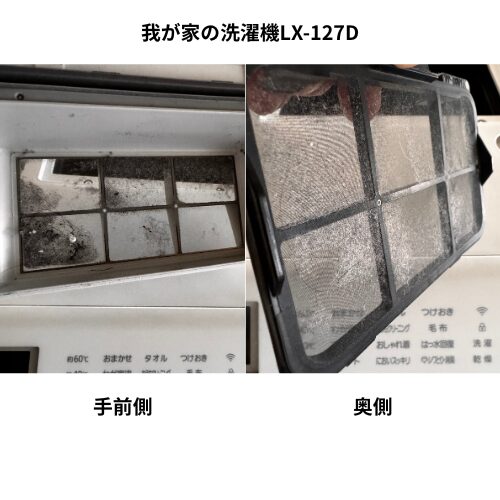 我が家の乾燥後のフィルターです。1回でホコリが溜まります。