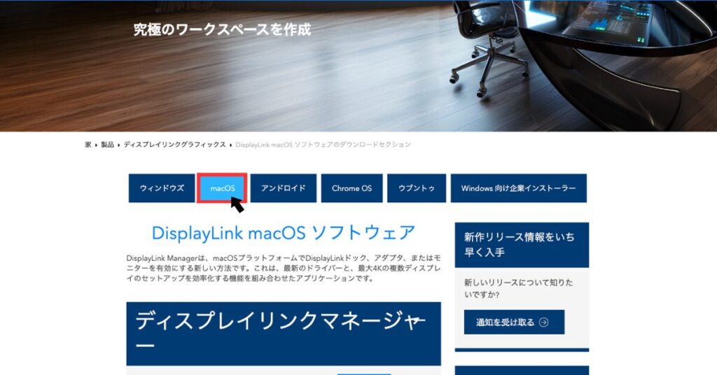 DisplayLinkはM2 MacBook Airの外部ディスプレイ出力制限を1画面から2画面に回避してくれるアプリです。
