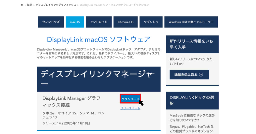 Googleで「DisplayLink Manager」と検索するとでてきます。